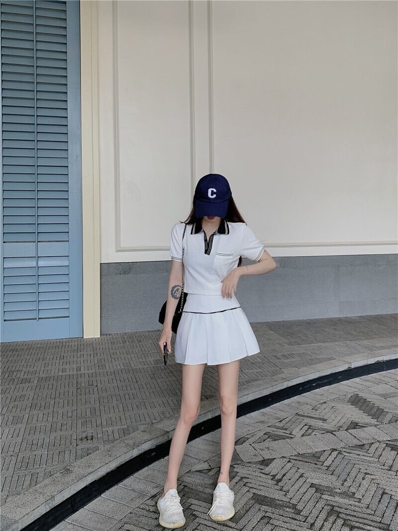Tシャツ サマースタンダードショートカラーホワイトトップス レトロ 大人ガーリー スウィート キュート カジュアル 夏物 ピュア ブラックストロベリース61706201803