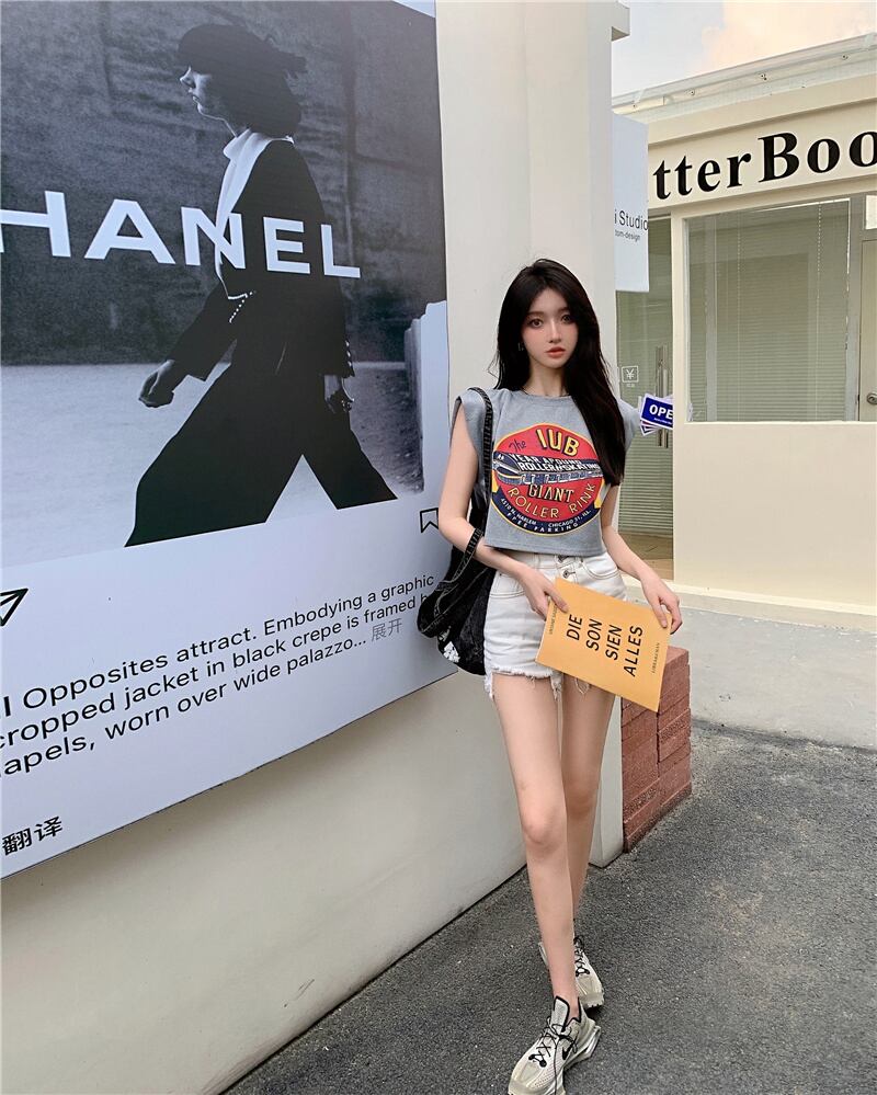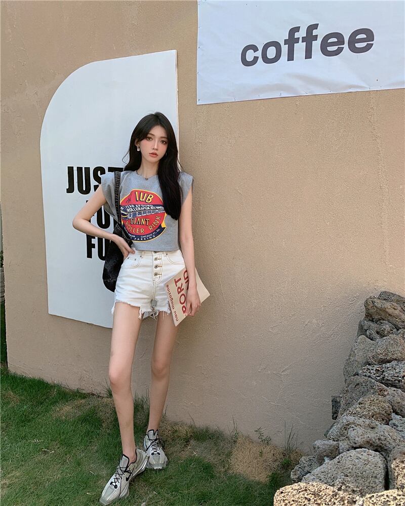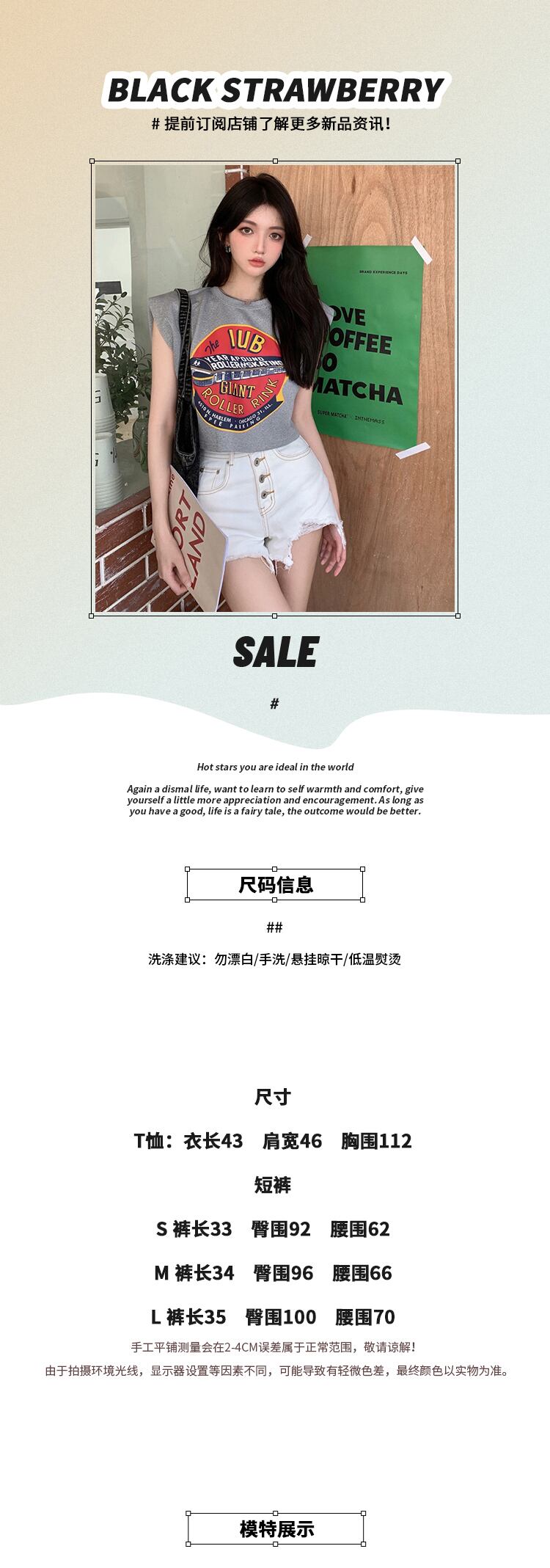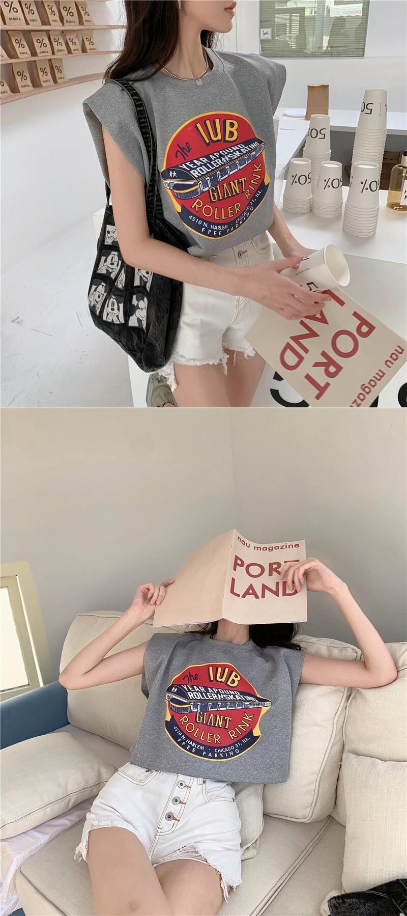 Tシャツ サマースタンダード薄手ショートルーズグレーノースリーブトップス レトロ 夏物 ブラックストロベリース61105572840