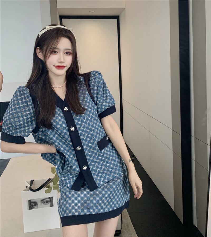 シャツ 格子柄スリーブ半袖ジャケット サマーブルー薄手トップス ショート ハーフスリーブ 夏物 ブラックストロベリース66156920258
