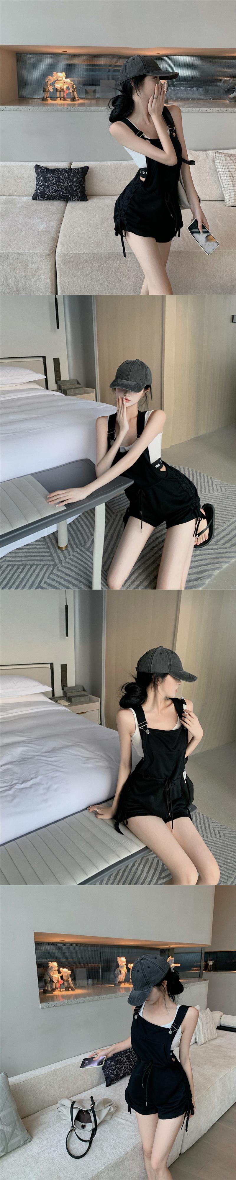 ジャンプスーツ オールインワン 薄手ハイウェストウェストギャザーショーツ サマーパンツ 夏物 ブルマー ブラックストロベリース41008708065