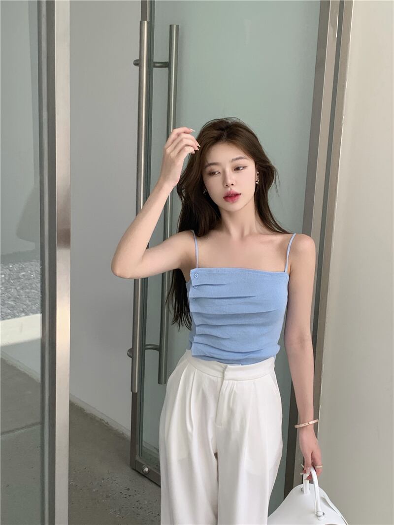 サマーブルーショートトップス プリーツ 夏物 ピュア ブラックストロベリース67282216938