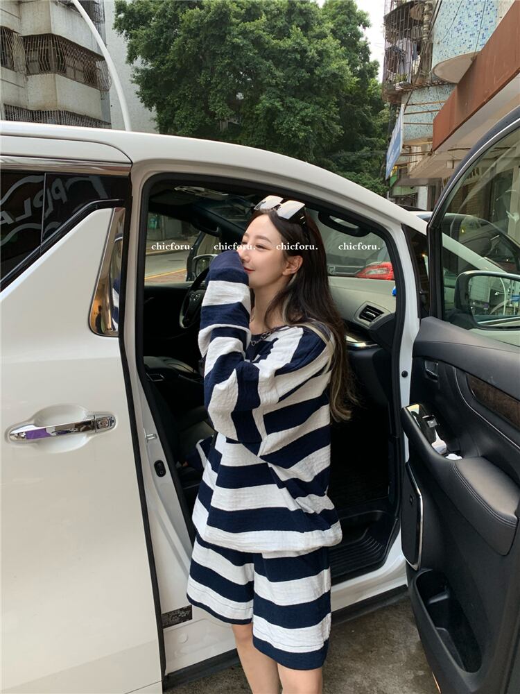 ストライプセーター ルーズスタイルトップス オータム 秋物 ブラックストロベリース91710243031
