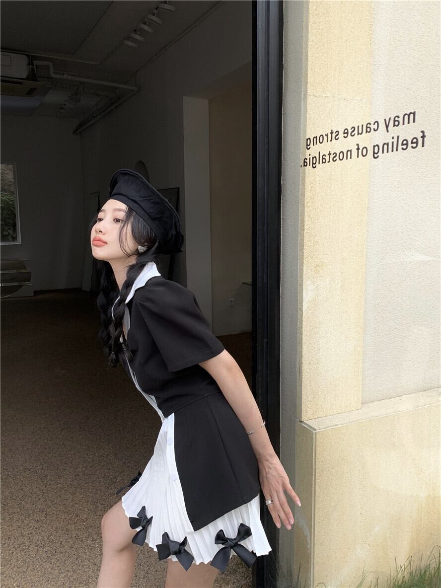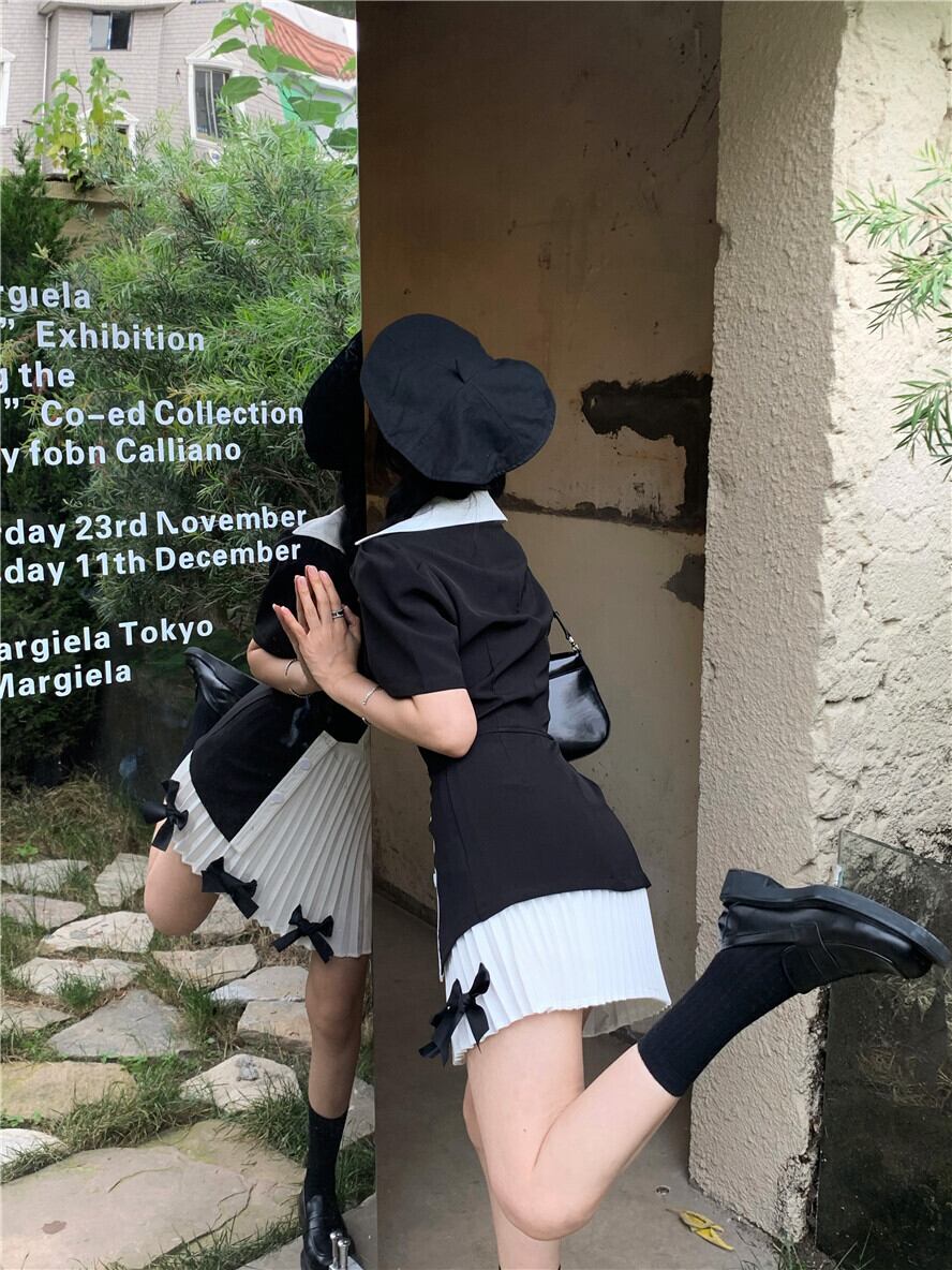 色:ブラックトップ,白いスカート