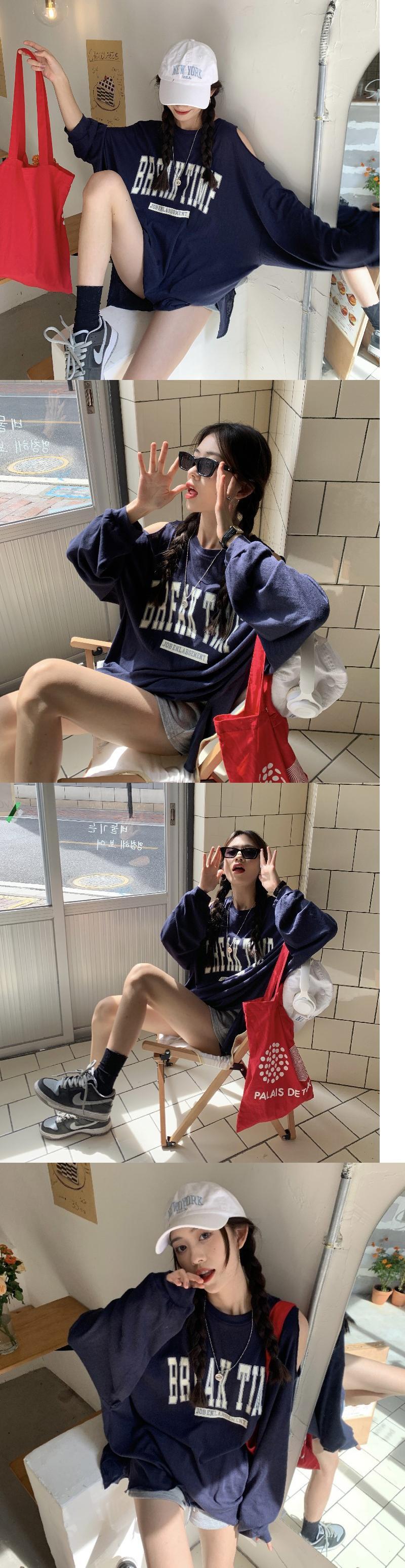 薄手Tシャツ レディースサマーカジュアルルーズトップス ロング 夏物 オフショルダー ブラックストロベリース60006412788