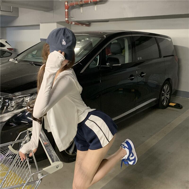 フードTシャツ ホワイトカーディガンサマー薄手トップス ロング 夏物 ピュア ブラックストロベリース29216323499