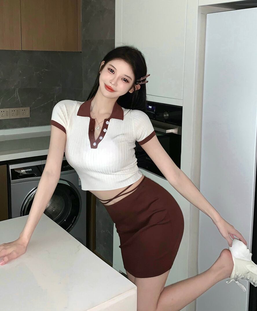スタンダードカラーニットTシャツ サマーショートハイウェストトップス レトロ 大人ガーリー スウィート キュート カジュアル 夏物 ピュア ブラックストロベリース35519000086