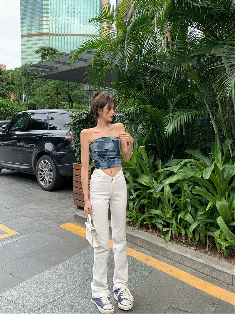 ジーンズ レディースハイウェストウェストサマーホワイトパンツ 夏物 ブラックストロベリース27688482633