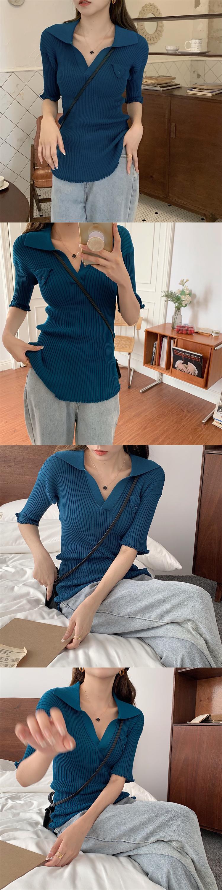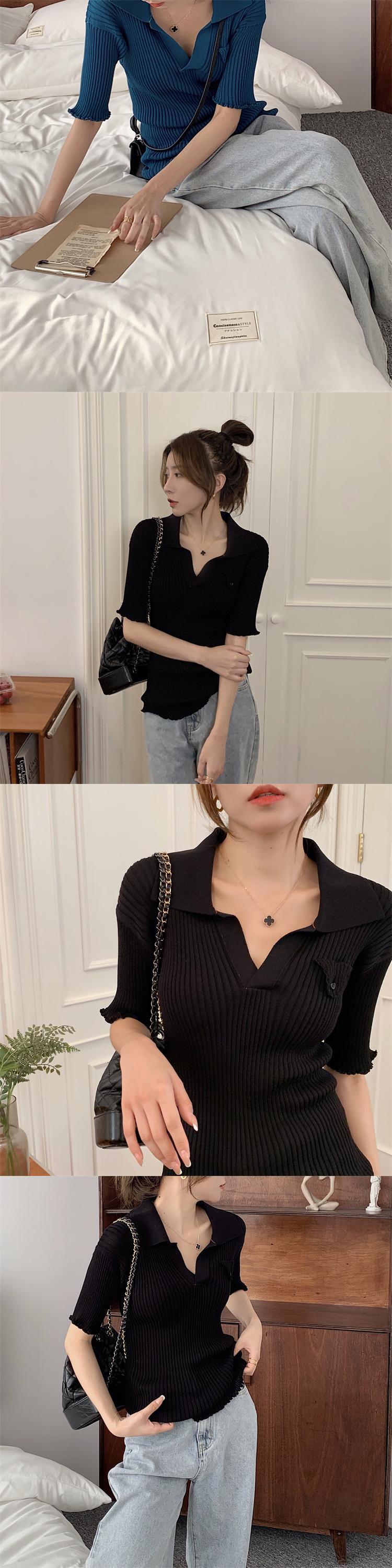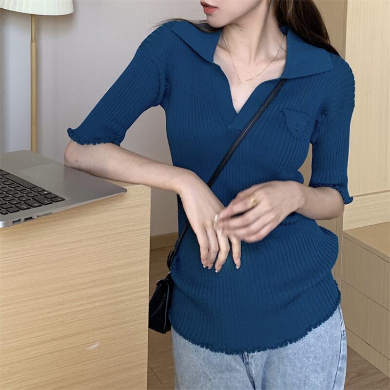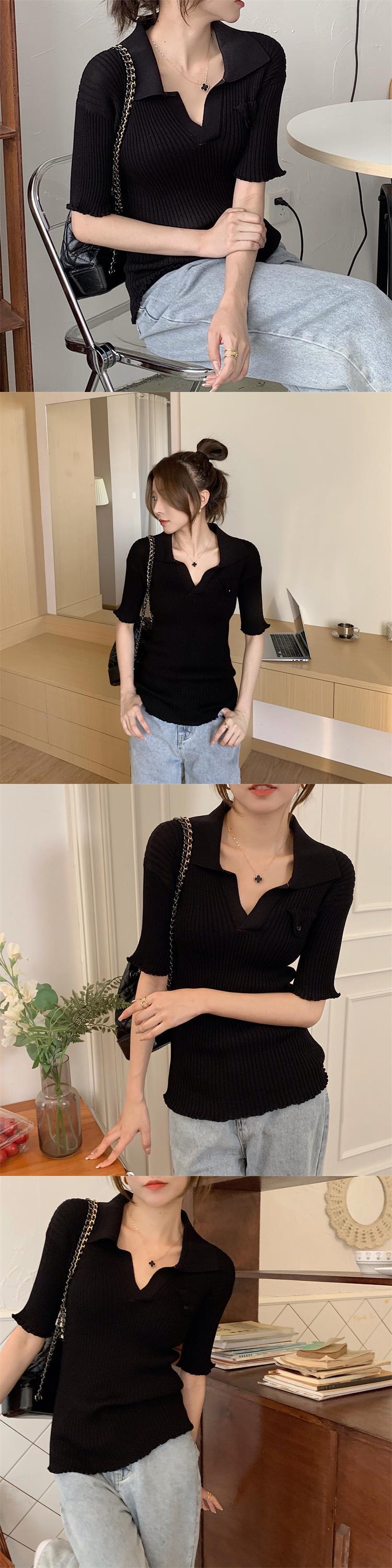 スタンダードカラーセーター Tシャツ サマー薄手ショートスリムトップス レトロ 夏物 ブラックストロベリース49529803510