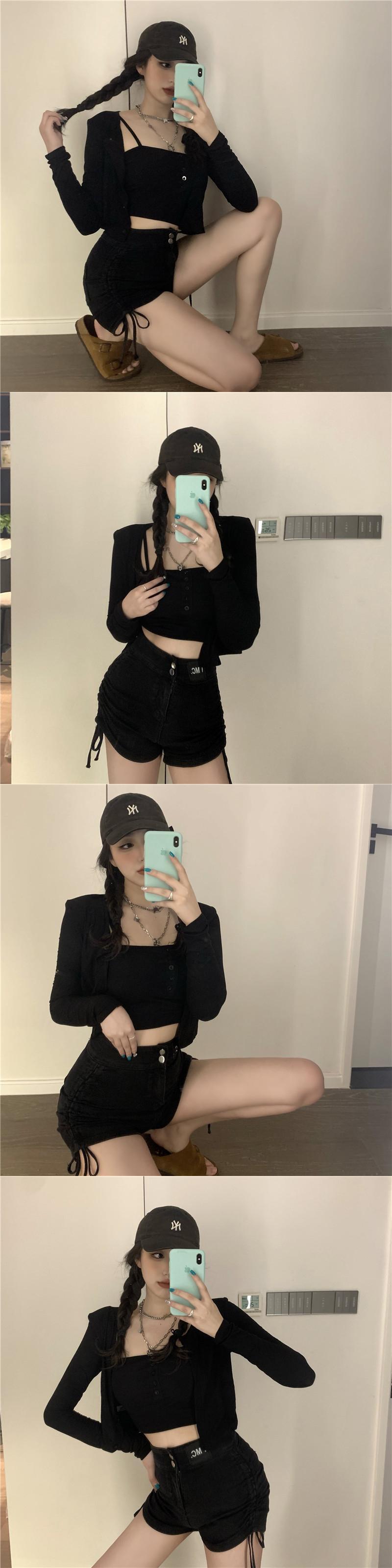 色:ピンクのツーピースセット,白いツーピース,黒のツーピース,ブルーデニムショーツ,ブラックデニムショーツ