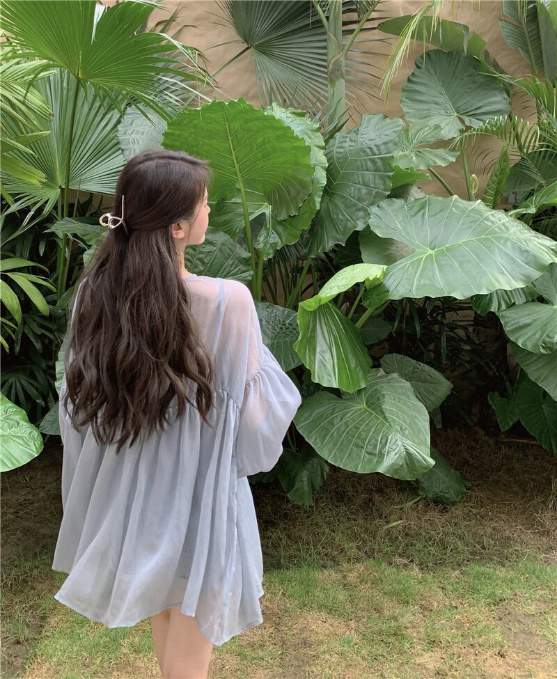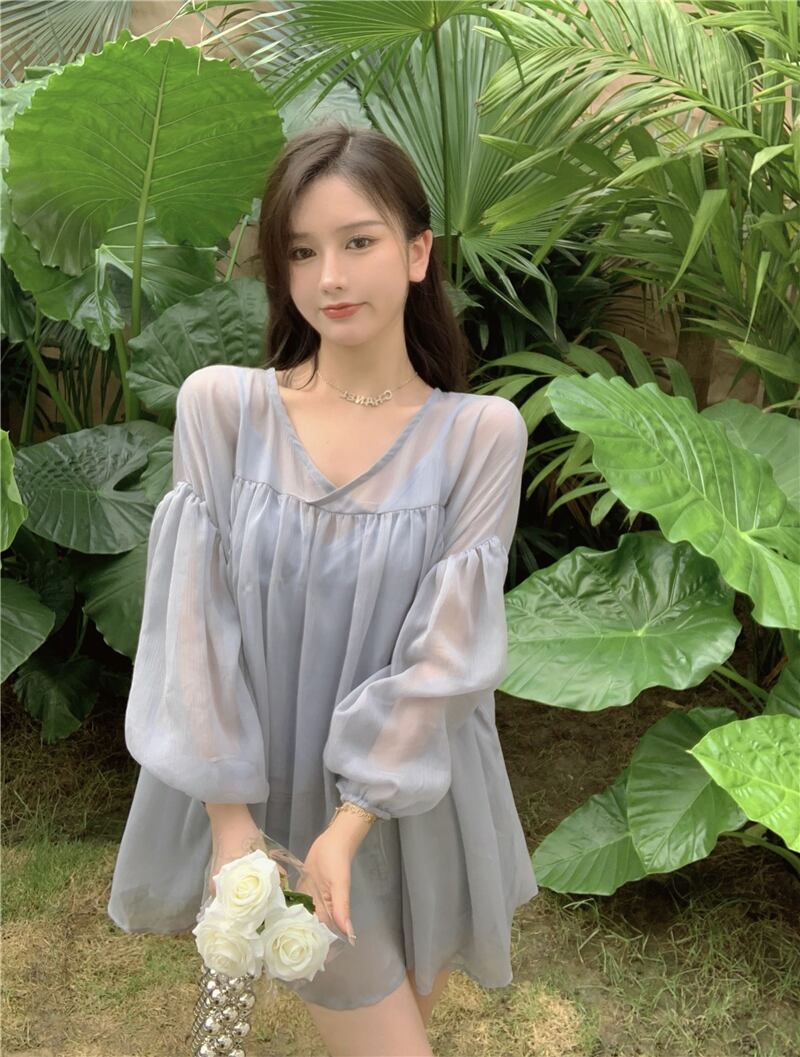 スリーブシフォンシャツ サマー薄手ルーズ長袖トップス ロング ランタンスリーブ 夏物 ブラックストロベリース30549327645