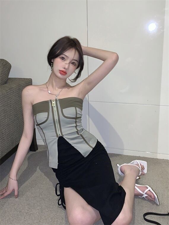 トップス サマー薄手スタイルストラップレスジャケット 夏物 ヨーロピアン ブラックストロベリース79476288007