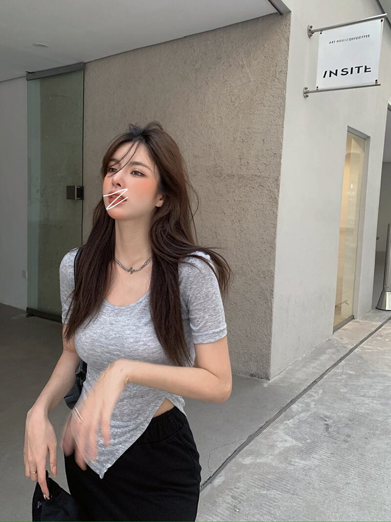 スリットTシャツ サマーショートスリムトップス 大人ガーリー スウィート キュート カジュアル 夏物 ブラックストロベリース77130261465