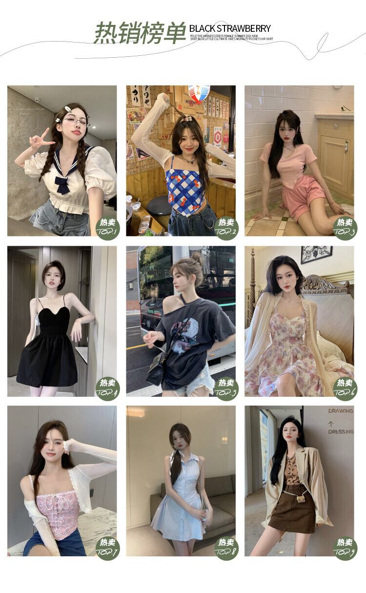 ホルタースカート セット サマースタイル ストリート 大人ガーリー スウィート キュート カジュアル 夏物 ブラックストロベリース96755066828