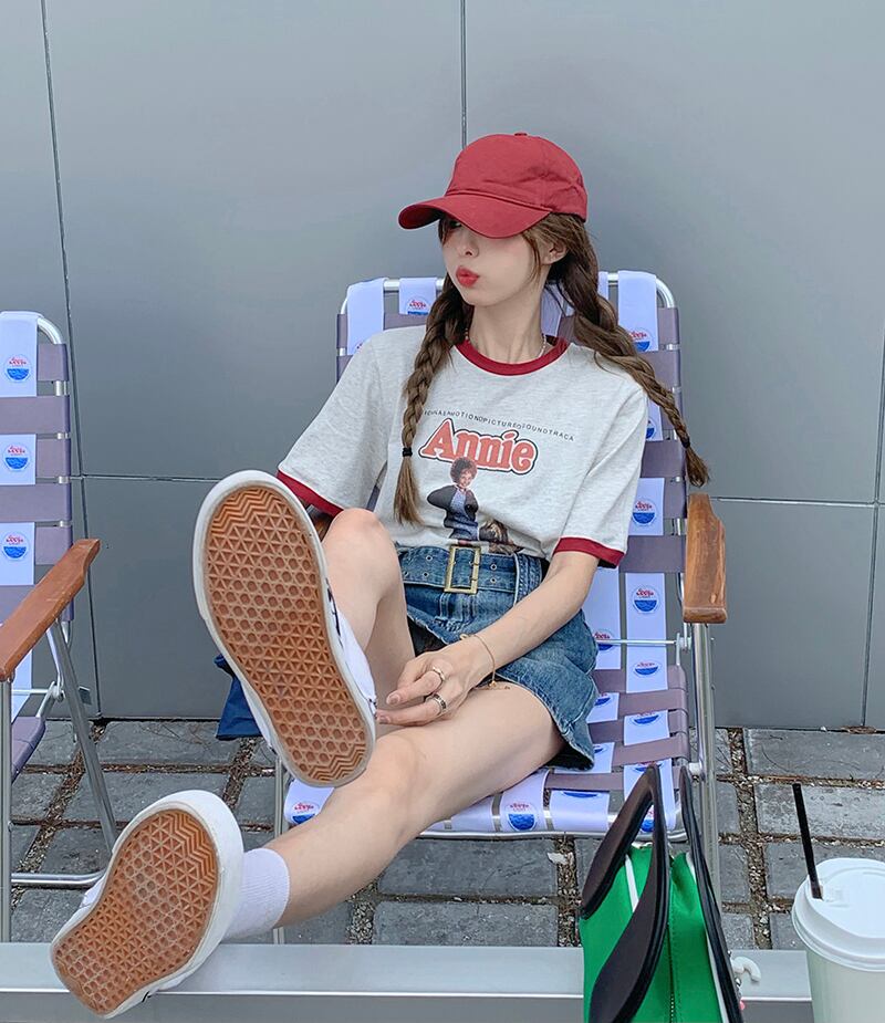 スタンダードカラープリントTシャツ サマーカジュアルルーズトップス レトロ 大人ガーリー スウィート キュート 夏物 ブラックストロベリース53458750859