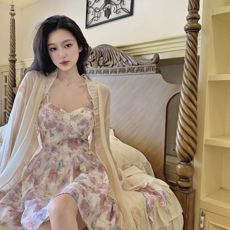 フローラルドレス サマーウェストショートスカート リボン 大人ガーリー スウィート キュート カジュアル 夏物 花柄 ブラックストロベリース23517343769