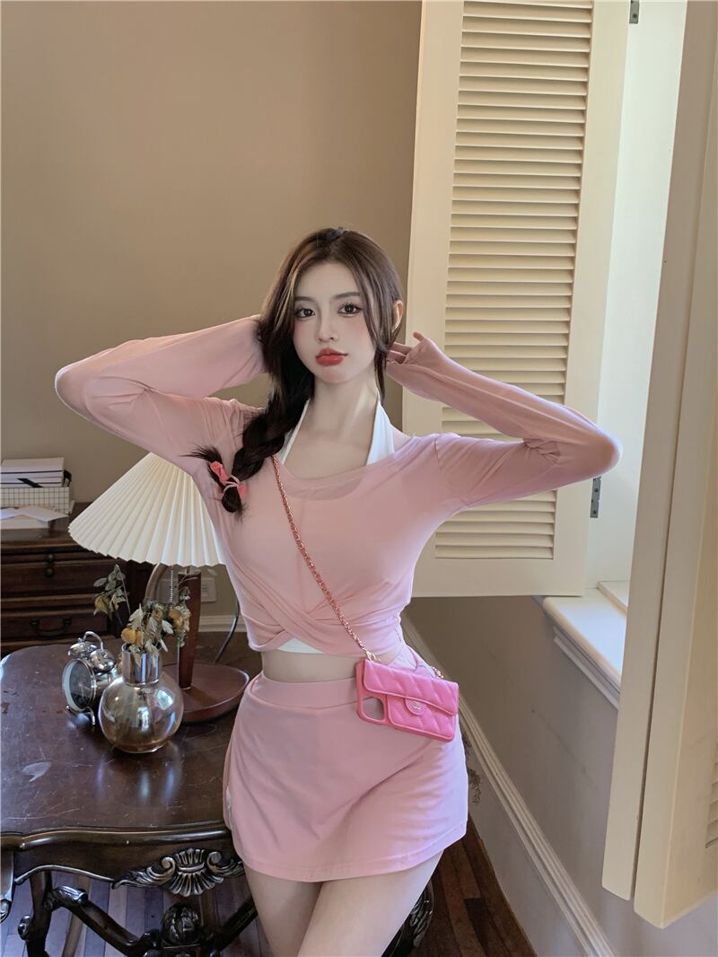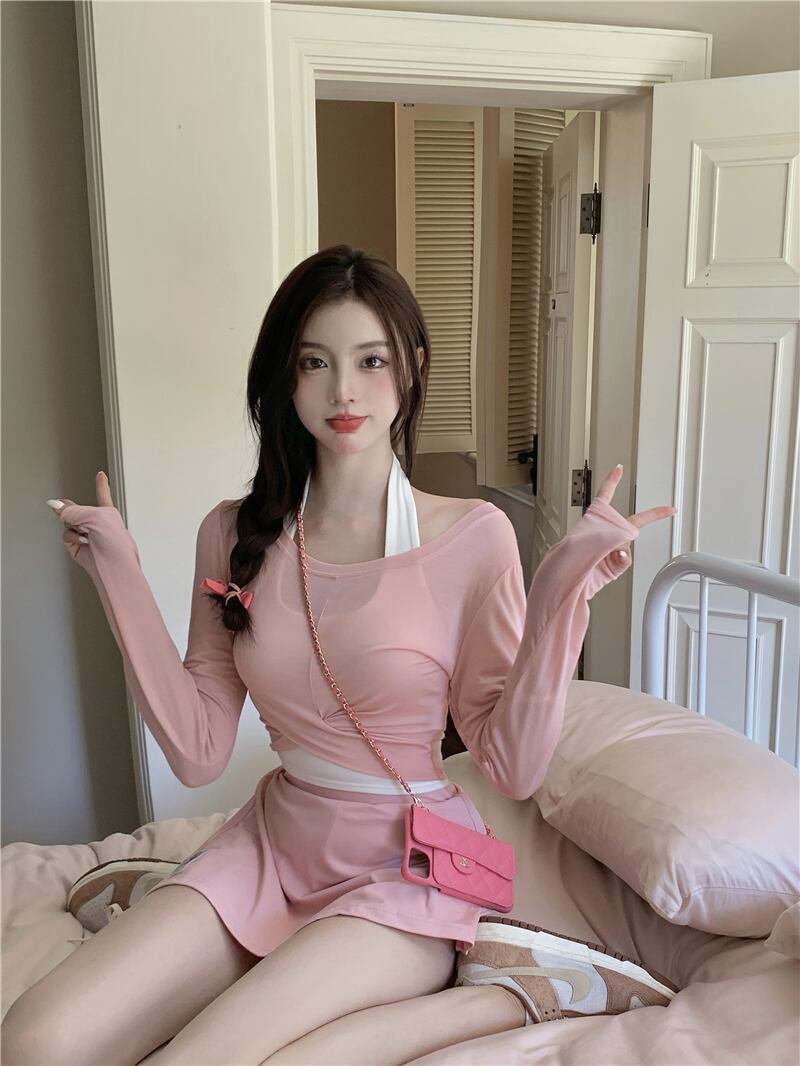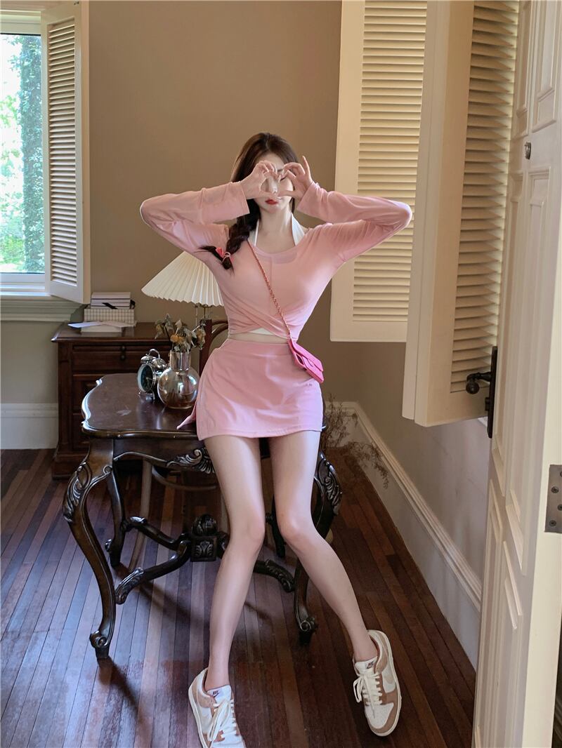 Tシャツ シャツ 薄手ショートサマートップス ロング ピンク 夏物 ブラックストロベリース1699187563