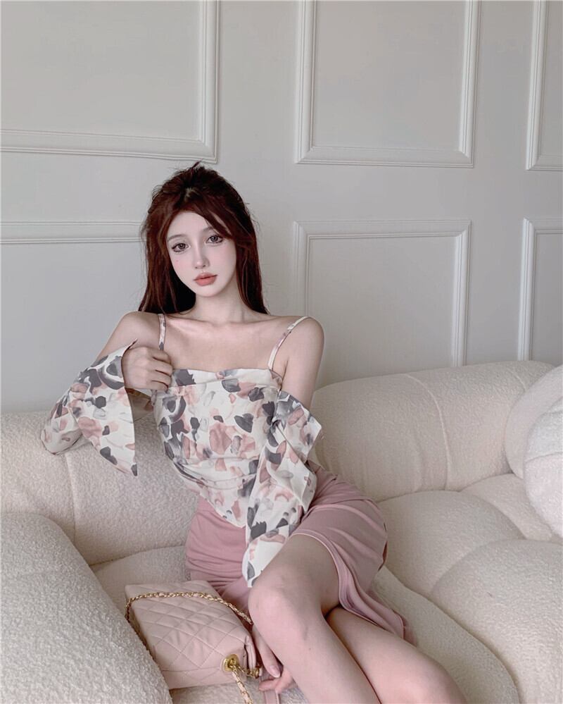 スカート ハイウェスト薄手サマー ピンク 夏物 ブラックストロベリース11613863687