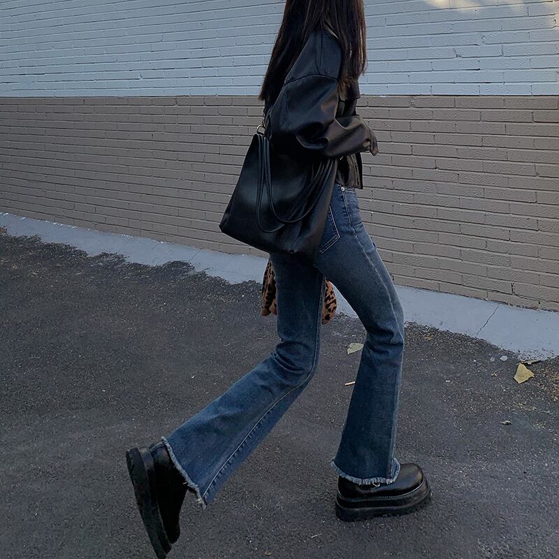 ジーンズ ハイウェストウェストスリムスプリングオータムルーズパンツ レッド 春物 秋物 ブラックストロベリース39712157257