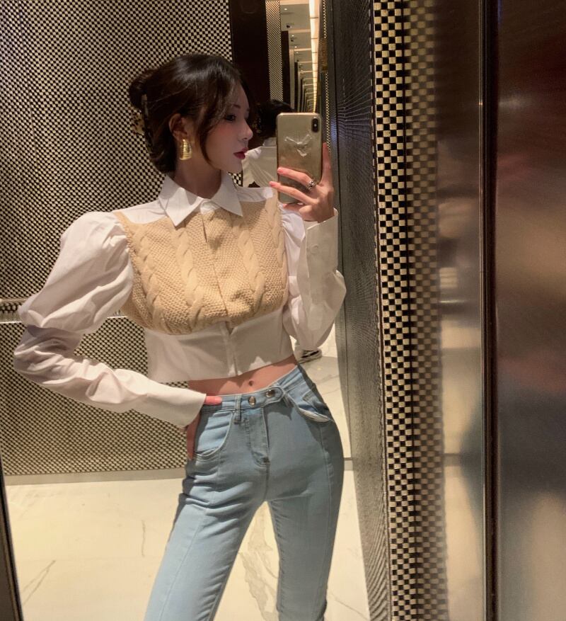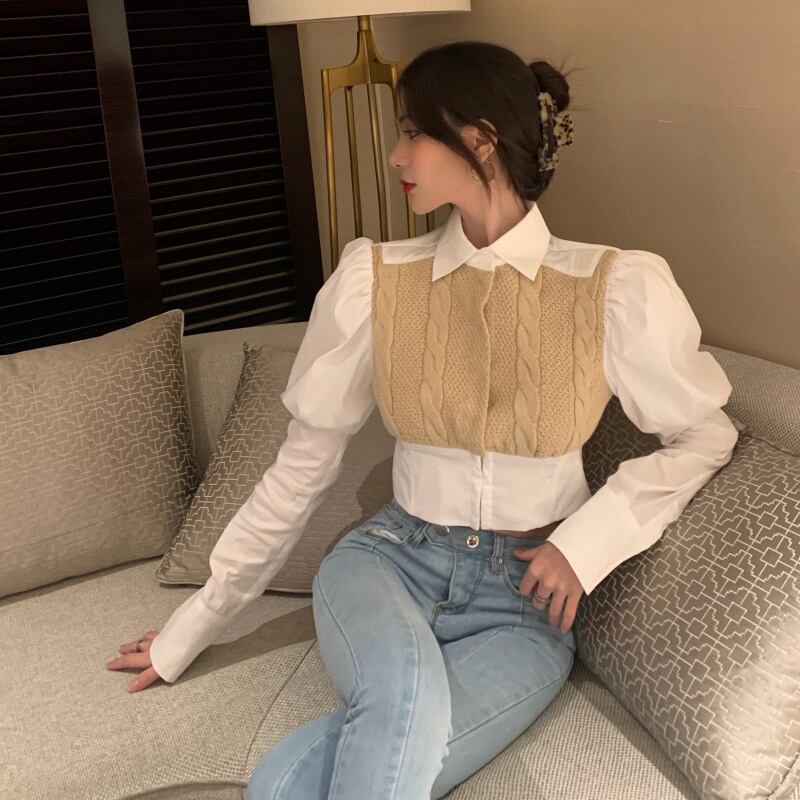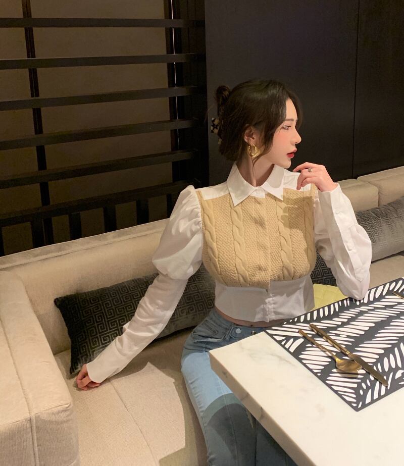 セーター シャツ スプリングスタンダードホワイトショートトップス ロング レトロ 春物 ステッチ ブラックストロベリース1406776113