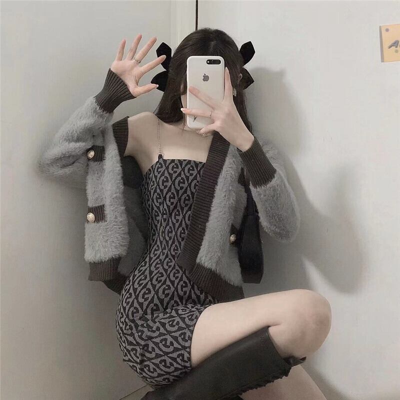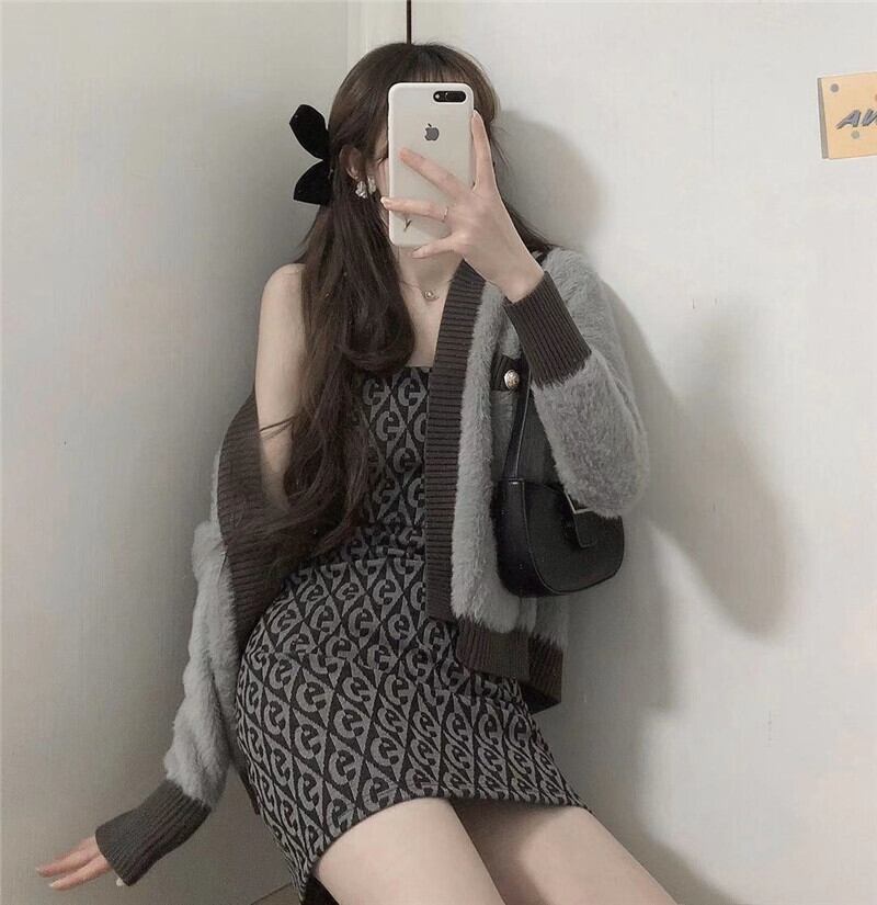 ニットセーター レディースグレートップス スプリングオータムショートスタンダードカーディガンジャケット レトロ 春物 秋物 ブラックストロベリース38885373066
