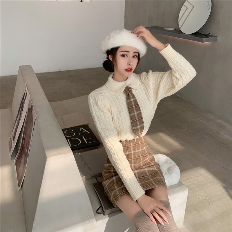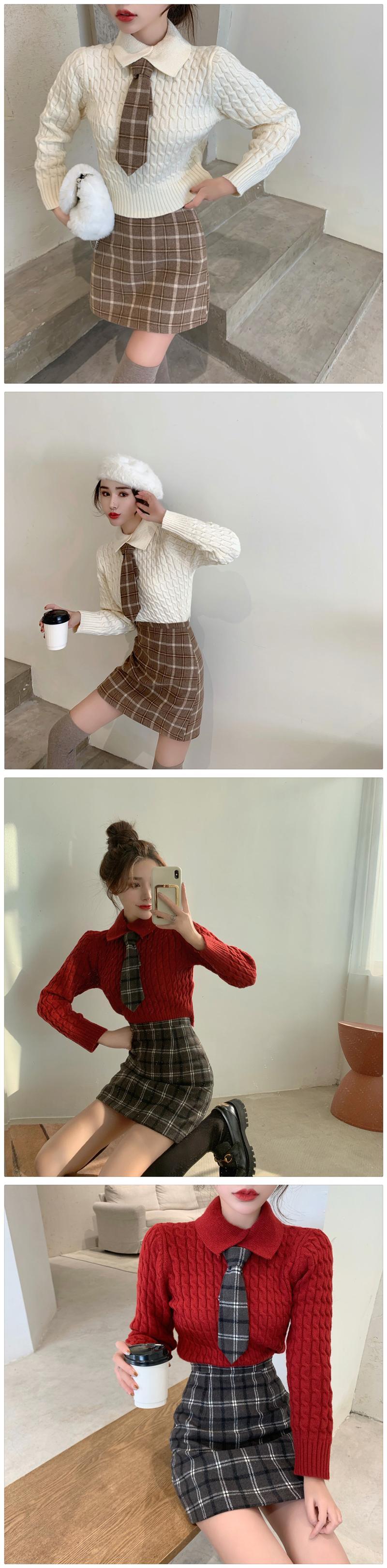 色:アプリコットスカート,グレースカート,アプリコットセーター(ネクタイ付き),赤いセーター(ネクタイ付き)