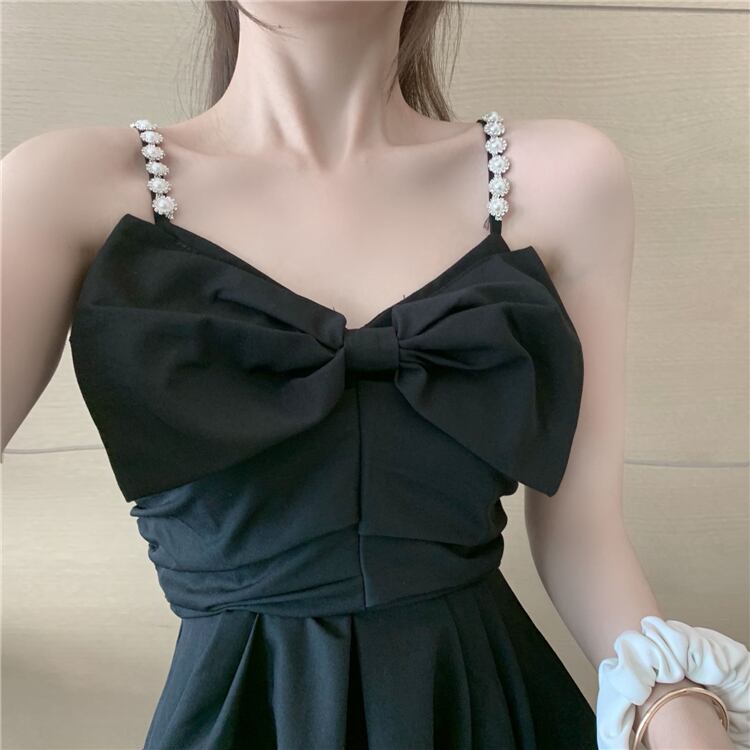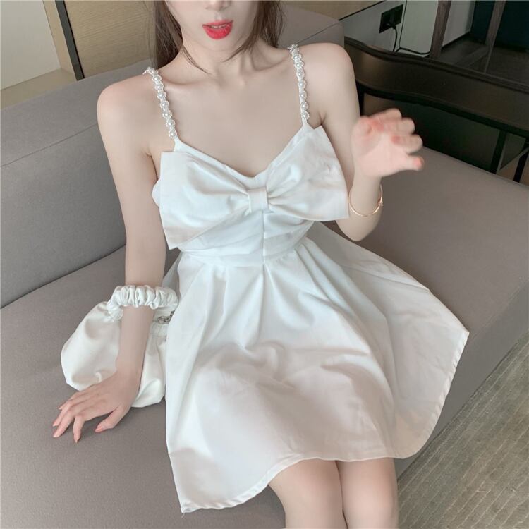 ドレス ウェストショートスカート サマーホワイト リボン 夏物 ブラックストロベリース50199698535