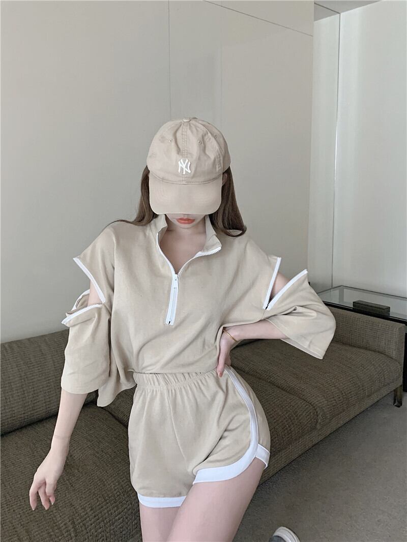 Tシャツ ブルールーズ薄手ショートジッパートップス サマースタイル 夏物 ブラックストロベリース44021482549