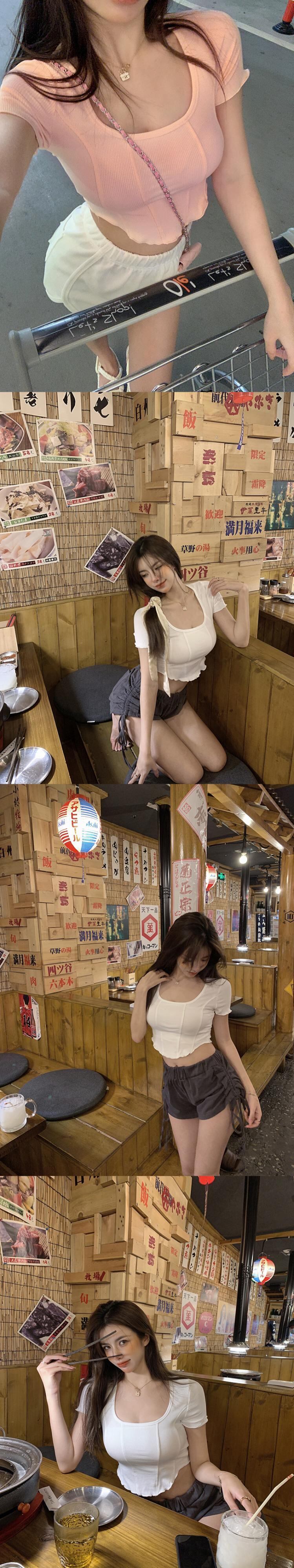Tシャツ サマーショートトップス ピンク 大人ガーリー スウィート キュート カジュアル 夏物 ピュア ブラックストロベリース39235768466