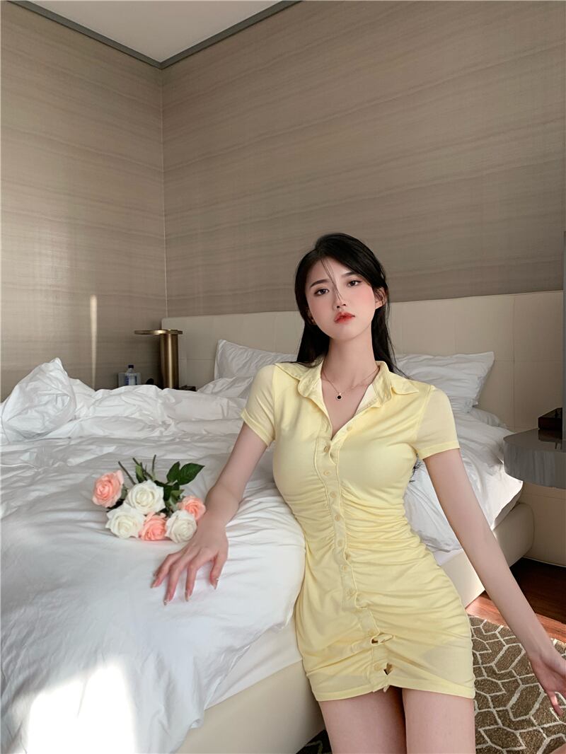 ドレス カラーウェストショートスカート サマー 夏物 ヨーロピアン ブラックストロベリース38915454247