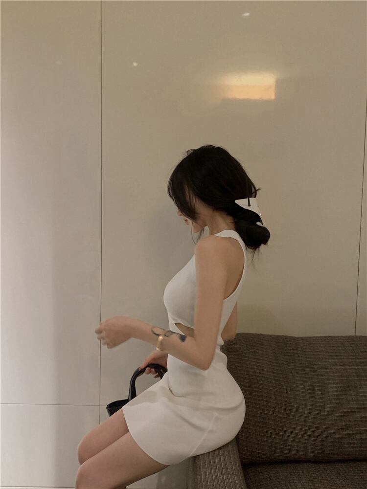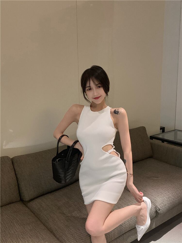 ニットドレス ウェストショートスカート サマーホワイト 夏物 ヨーロピアン ブラックストロベリース45244650290