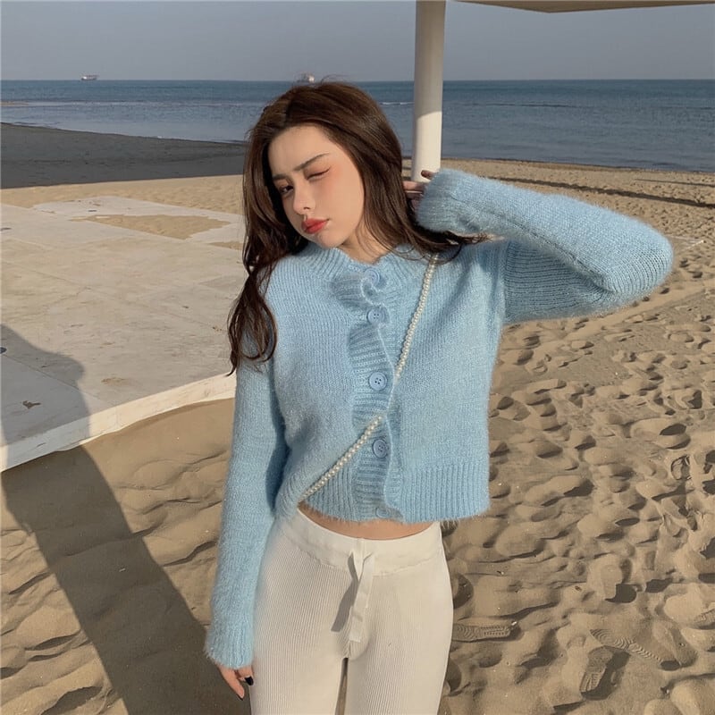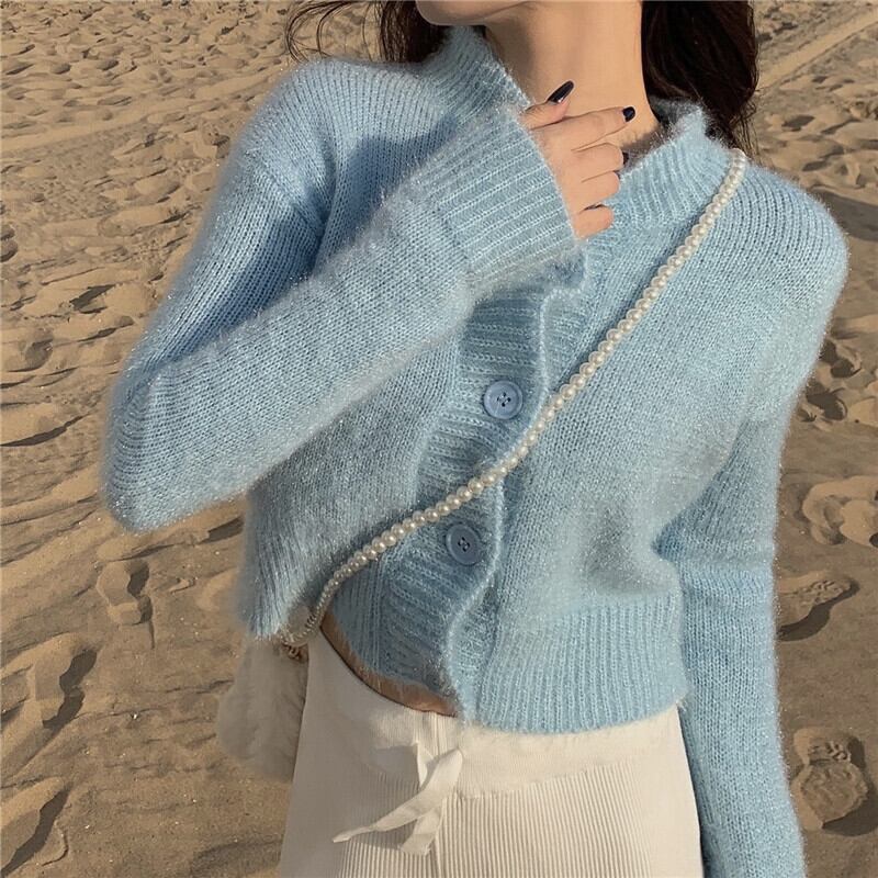 ニットセーター カーディガンジャケット レディーススプリングブルースタイルルーズ 春物 ブラックストロベリース8125258422