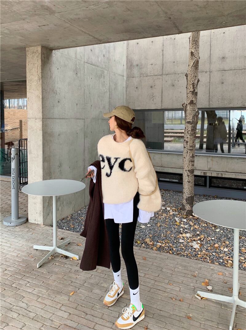 セーター ジャケット オータムウィンタースタンダードスタイルルーズブラックニットトップス レトロ 秋物 冬物 ブラックストロベリース62289518504
