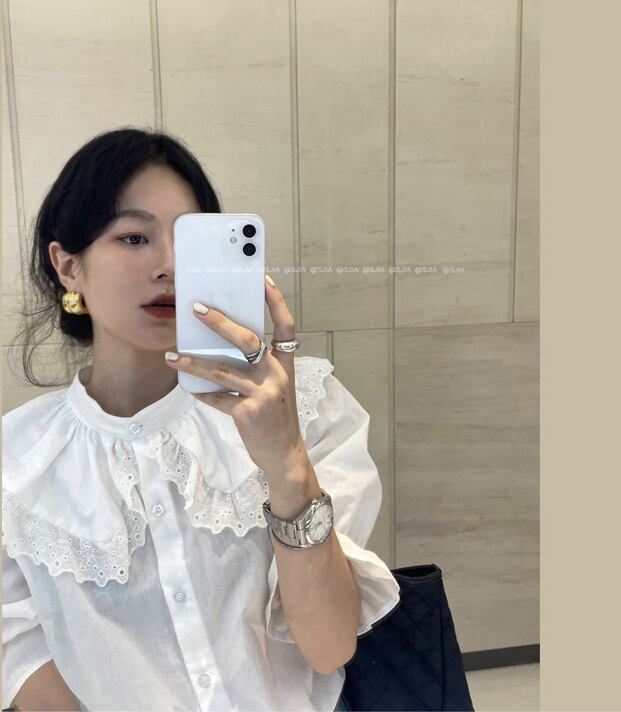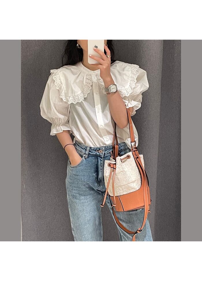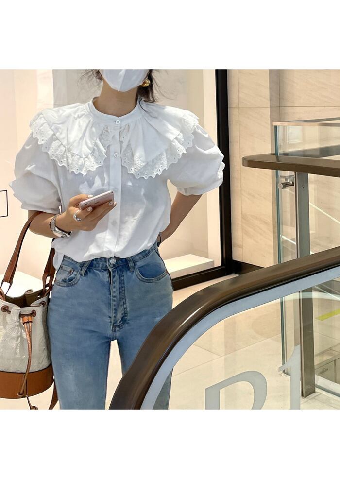 シャツ カラーレーススリーブサマーホワイトトップス 夏物 ブラックストロベリース90245356614
