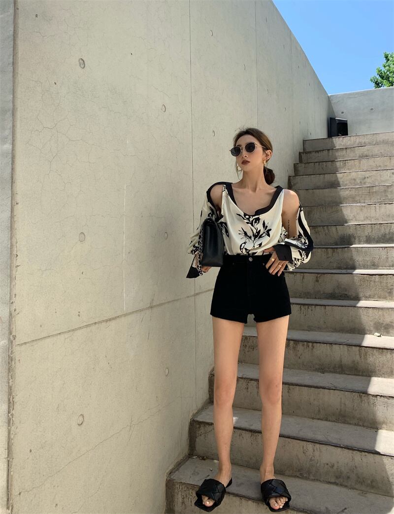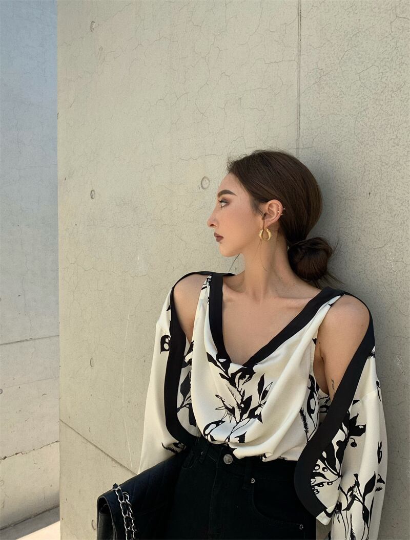 フローラルシャツ サマー薄手 ロング 夏物 花柄 オフショルダー ブラックストロベリース29504389575