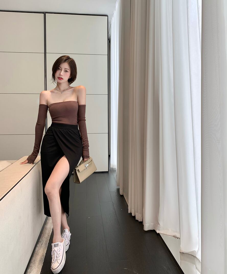 色:チャコールトップ,ブラウンコーヒートップ,ミスティパープルトップ,黒スカート,グレースカート,ピンクのスカート