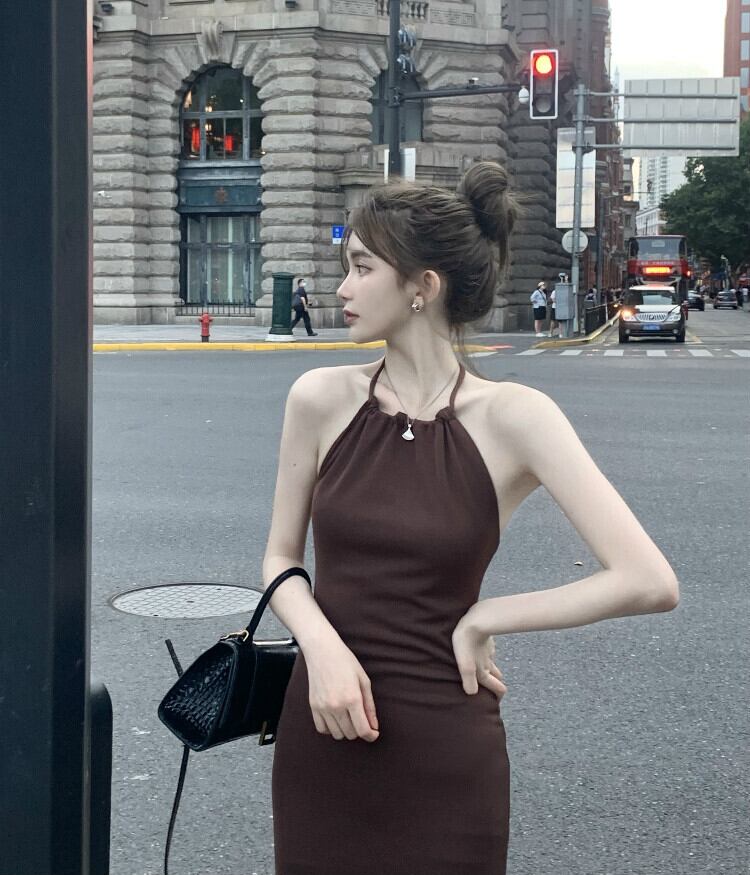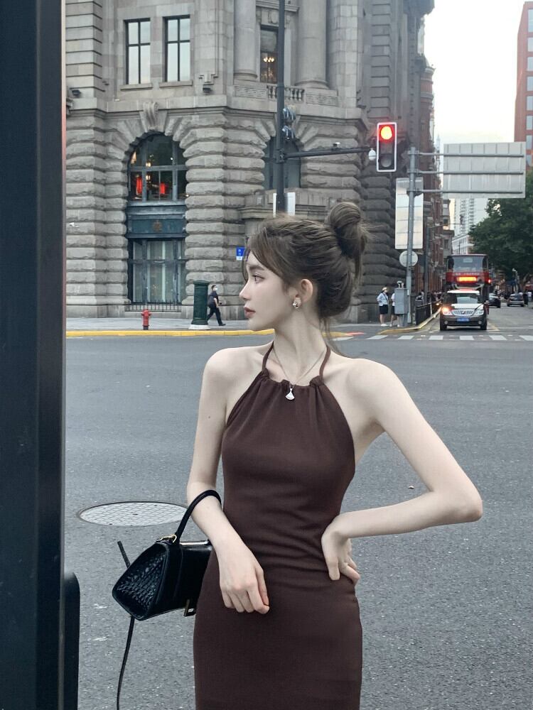ニットホルタードレス スタイルスカート サマー 夏物 ヨーロピアン ブラックストロベリース98670041336