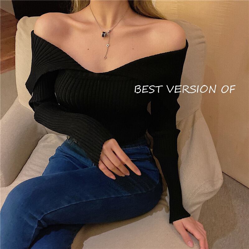 セーター ショートニットトップス スプリングブラックシャツ 春物 ブラックストロベリース95407952306