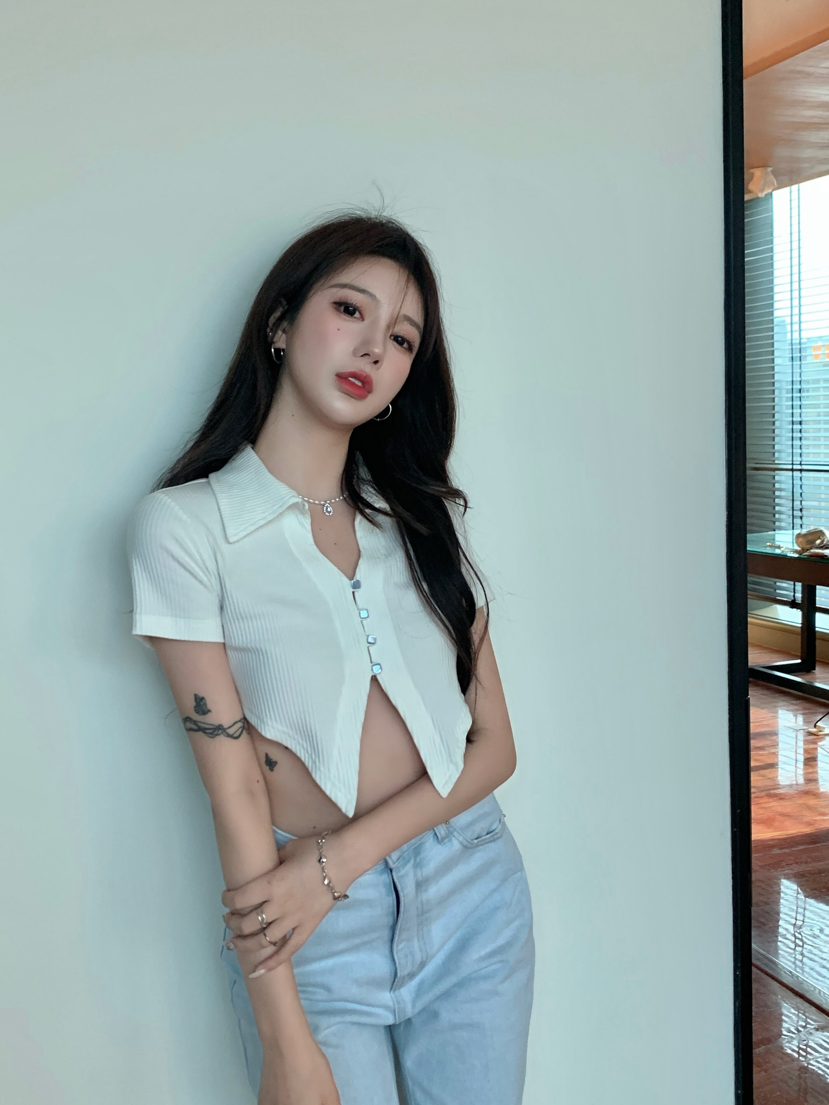 カーディガンTシャツ サマーショートスタイルスリムトップス 夏物 ピュア ブラックストロベリース75719206512