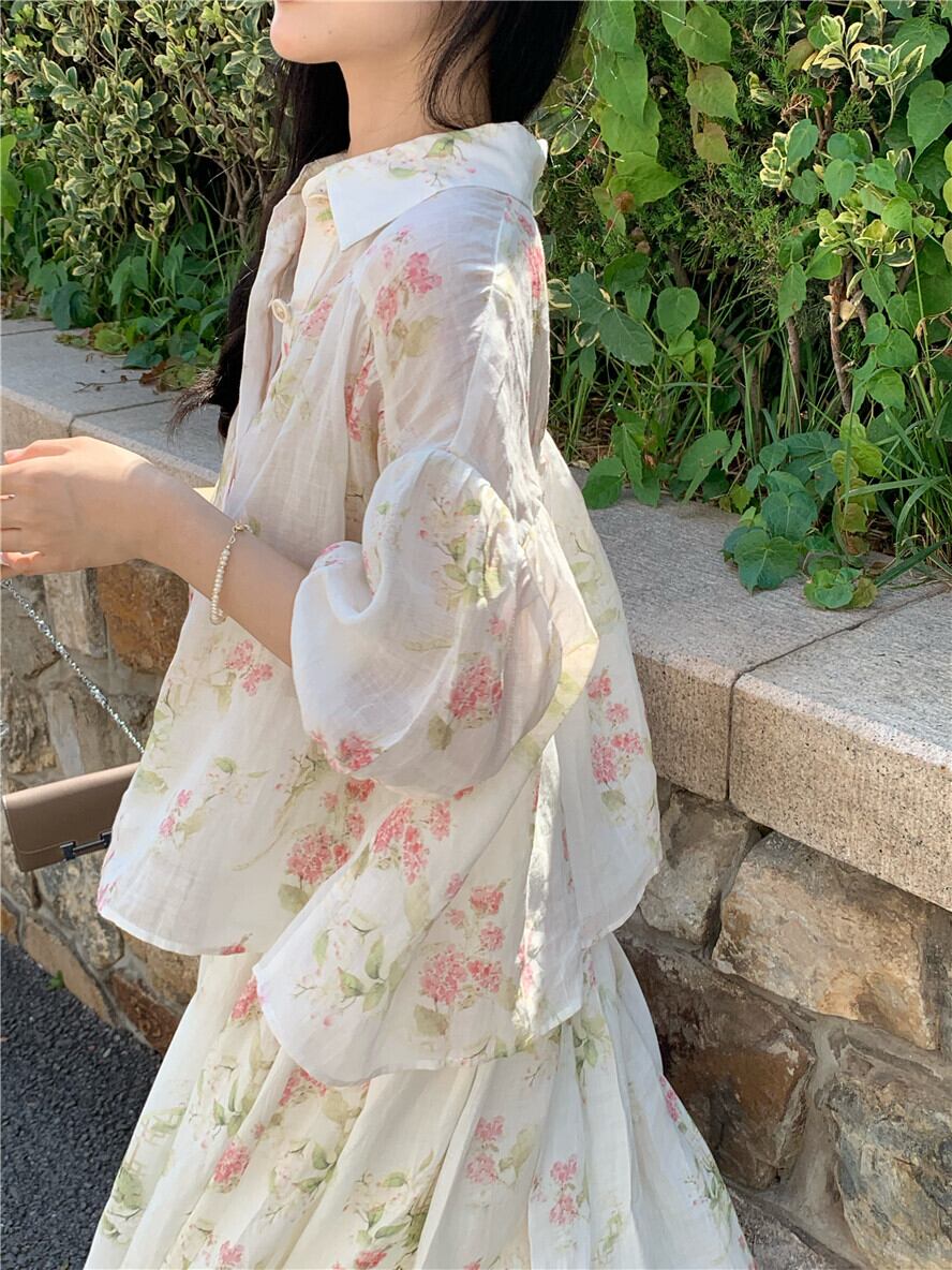 シフォンフローラルシャツ ルーズジャケット サマー薄手トップス 夏物 花柄 ブラックストロベリース30289416714