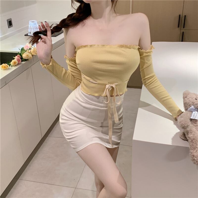 Tシャツ 薄手ショートトップス サマースタイル ロング リボン 夏物 ブラックストロベリース72465049300
