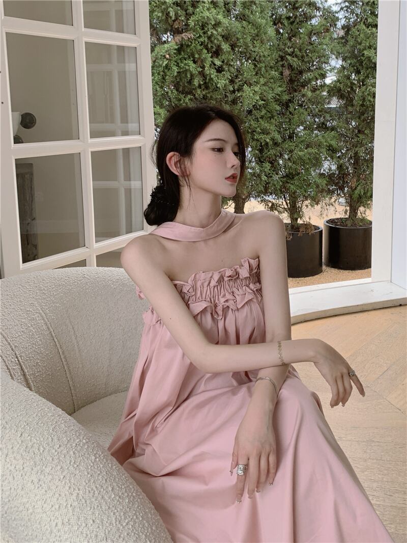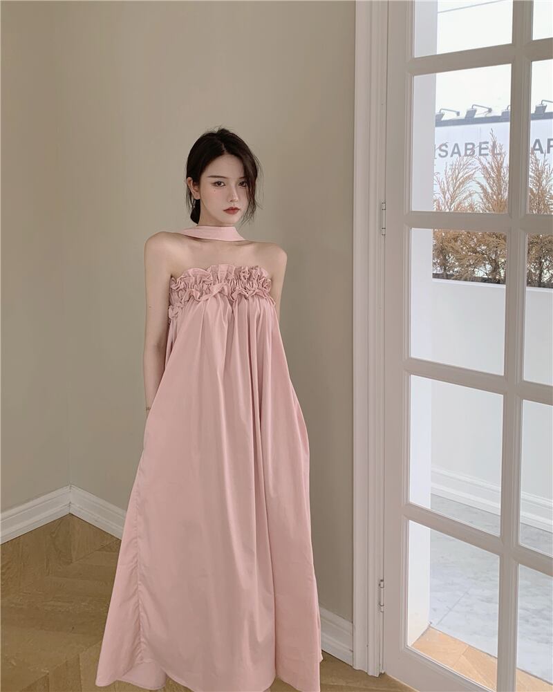 ホルタートップス ドレス スカート サマー ピンク 夏物 ブラックストロベリース52863988586