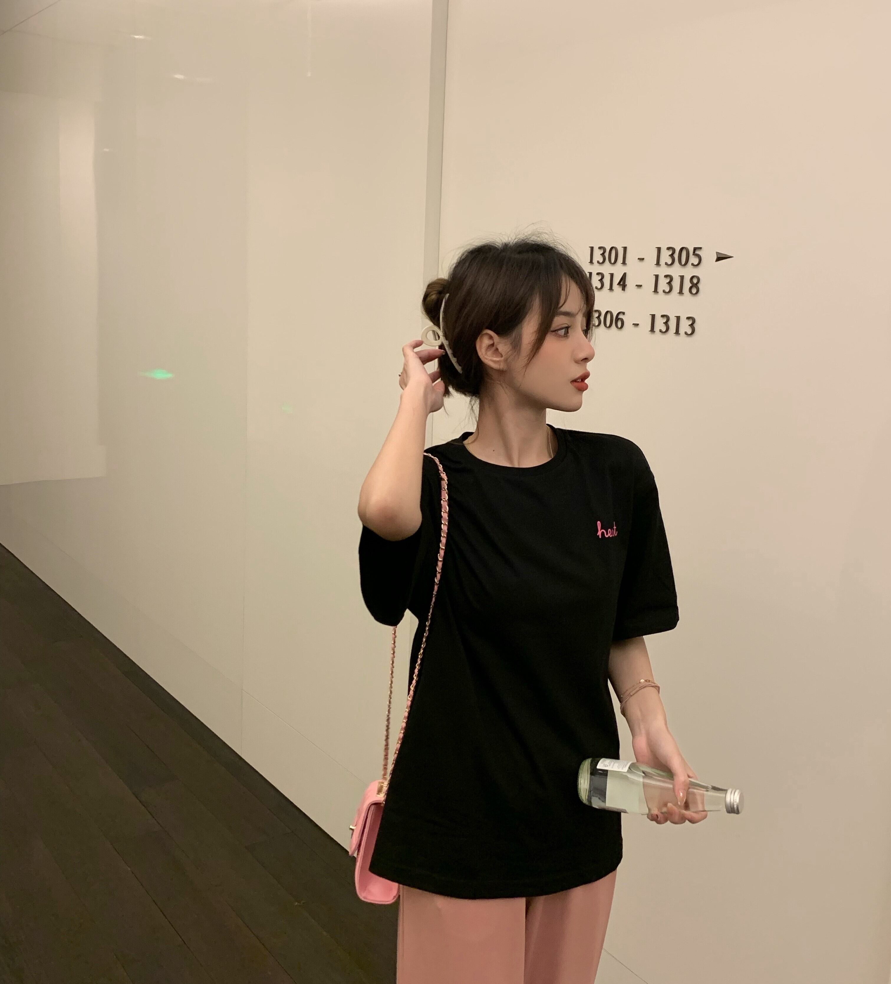 Tシャツ 薄手スタンダードスタイルホワイトルーズトップス サマー レトロ 夏物 ブラックストロベリース68311387541