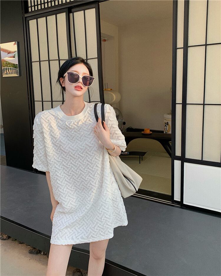Tシャツ ドレス ルーズ薄手ホワイトショートスカート サマースタイル 夏物 ブラックストロベリース17998274214