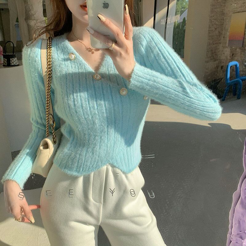 セーター スリムニットトップス スプリングオータムホワイトシャツ 春物 秋物 ブラックストロベリース78131730407