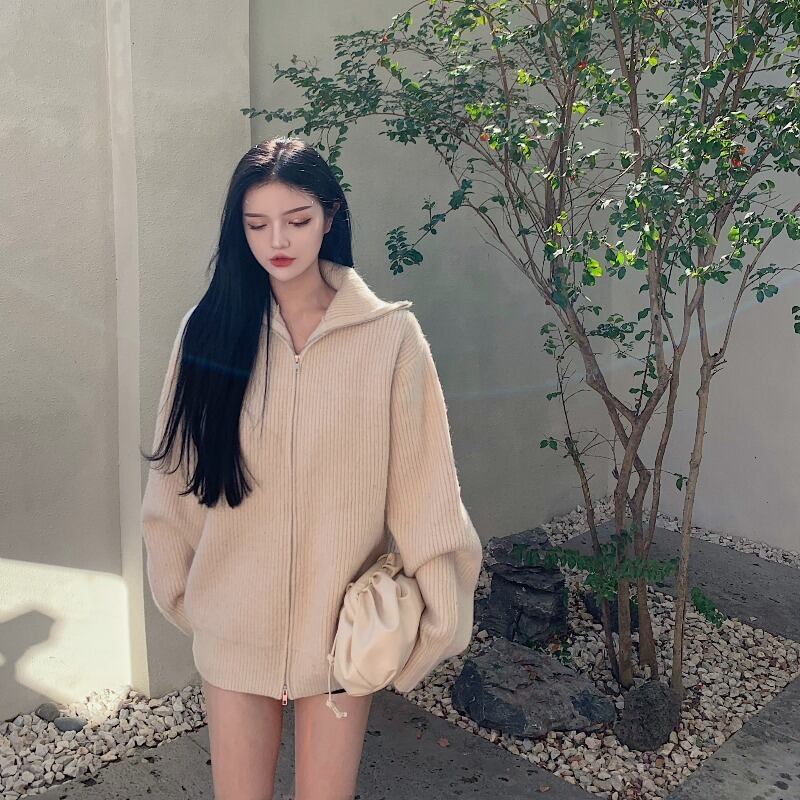 セーター レディースニットトップス オータムウィンタージッパーカーディガンジャケット ピンク 秋物 冬物 ブラックストロベリース70490352729