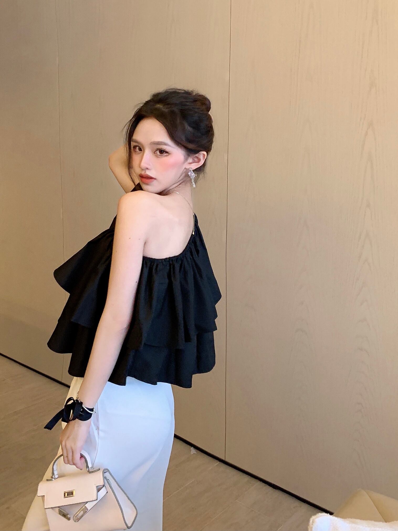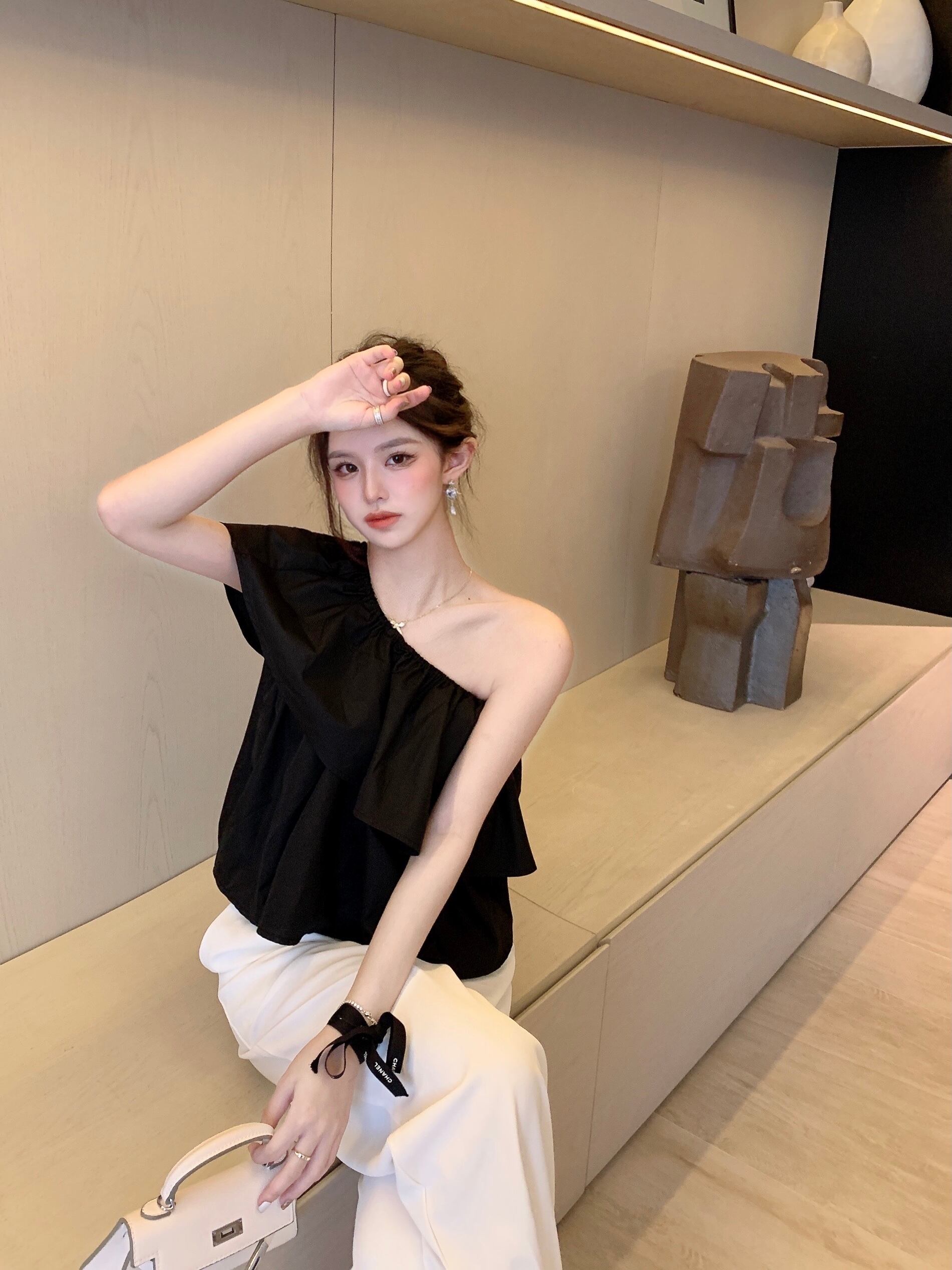 ショートシャツ サマーブラックトップス 夏物 オフショルダー ブラックストロベリース10920654625