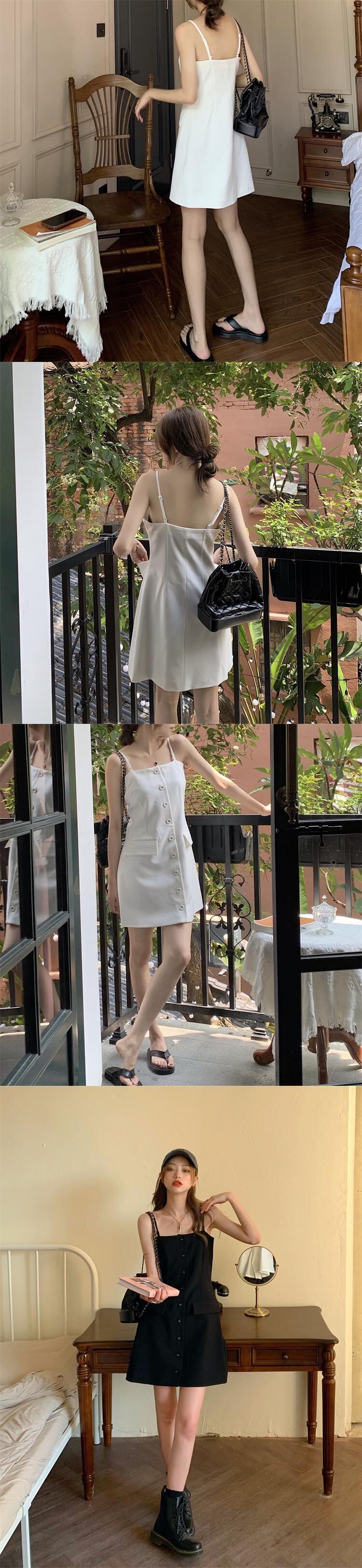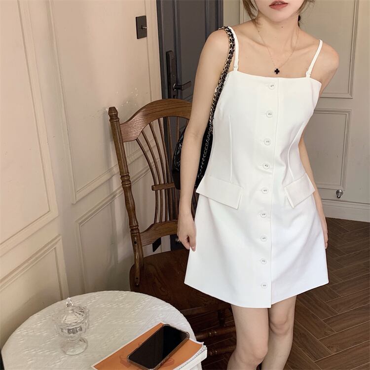 ドレス ホワイトウェスト薄手トップス ショートスカート サマー 夏物 ブラックストロベリース81372191395