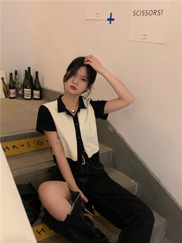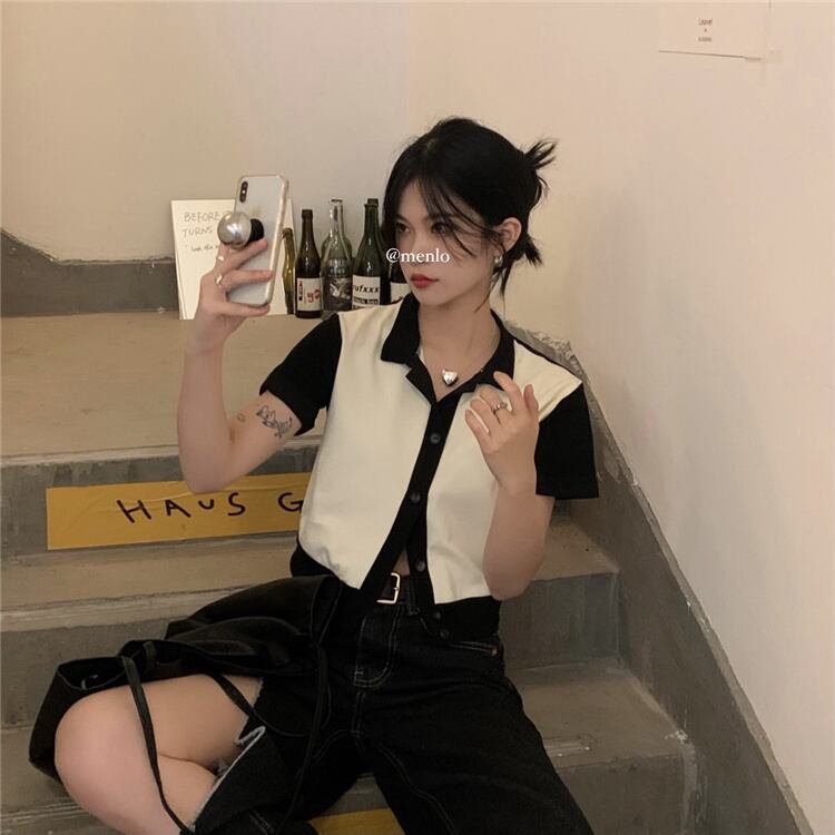 Tシャツ サマーショートスタンダード薄手カラートップス レトロ 大人ガーリー スウィート キュート カジュアル 夏物 ブラックストロベリース72024171350