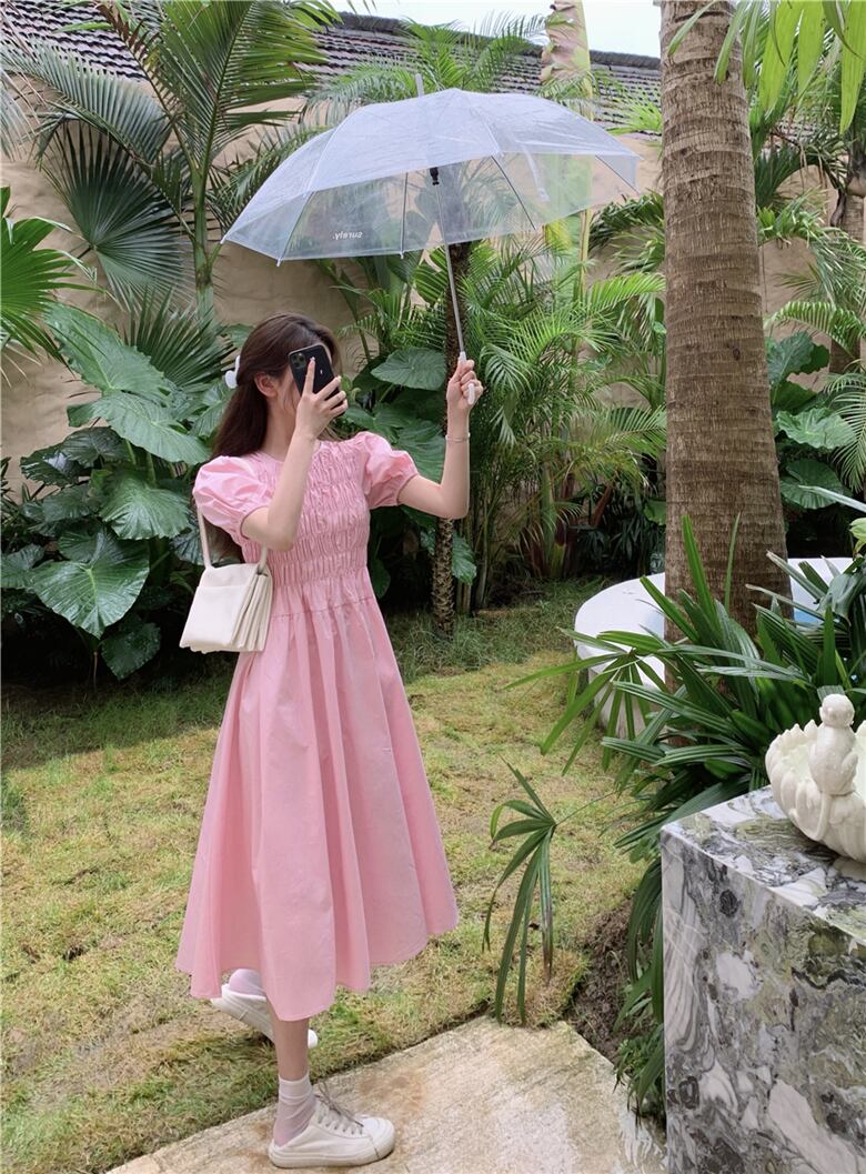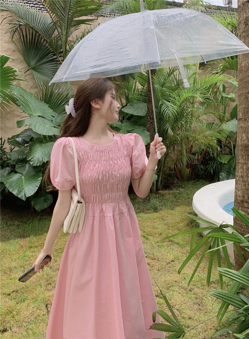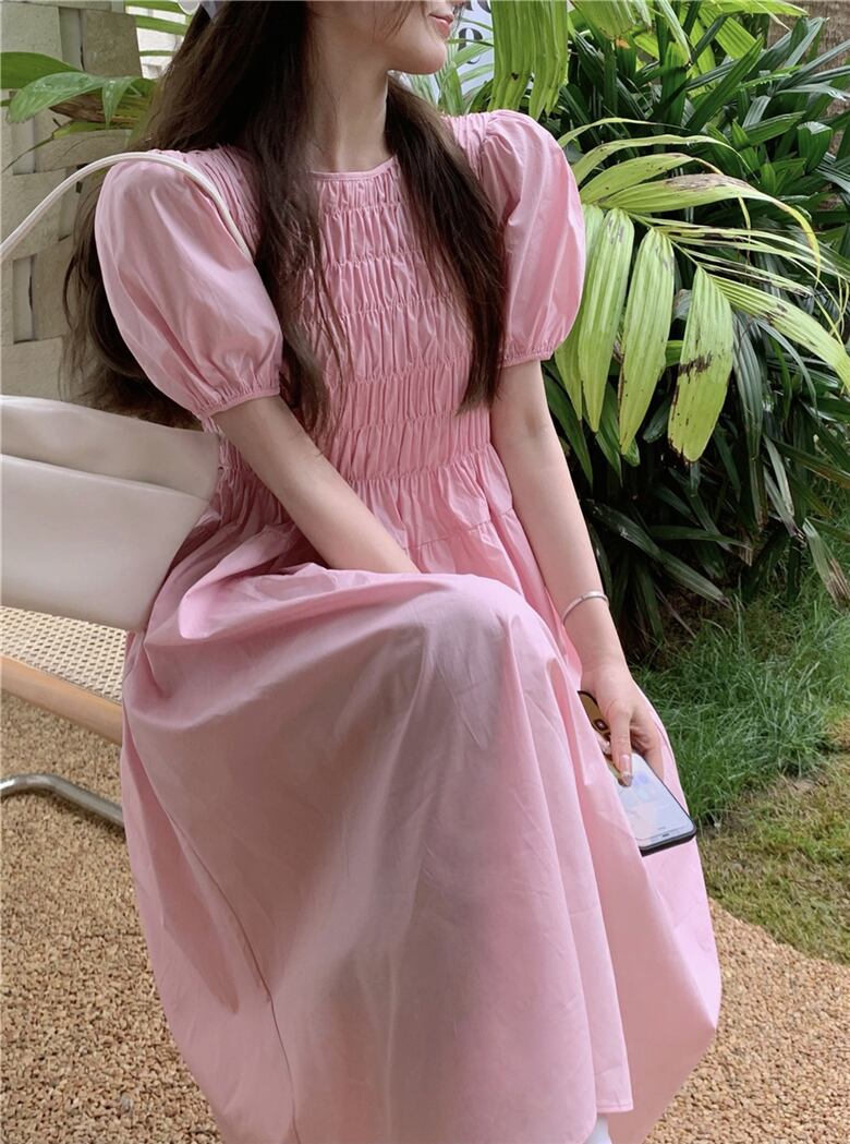 スリーブ半袖ドレス サマースカート ショート ピンク ハーフスリーブ 夏物 ブラックストロベリース73830447149