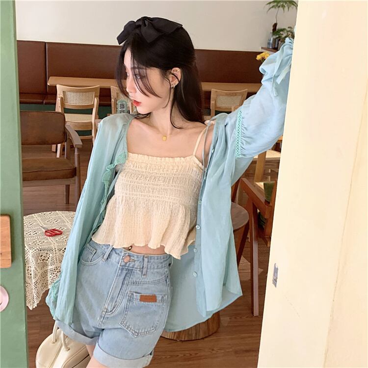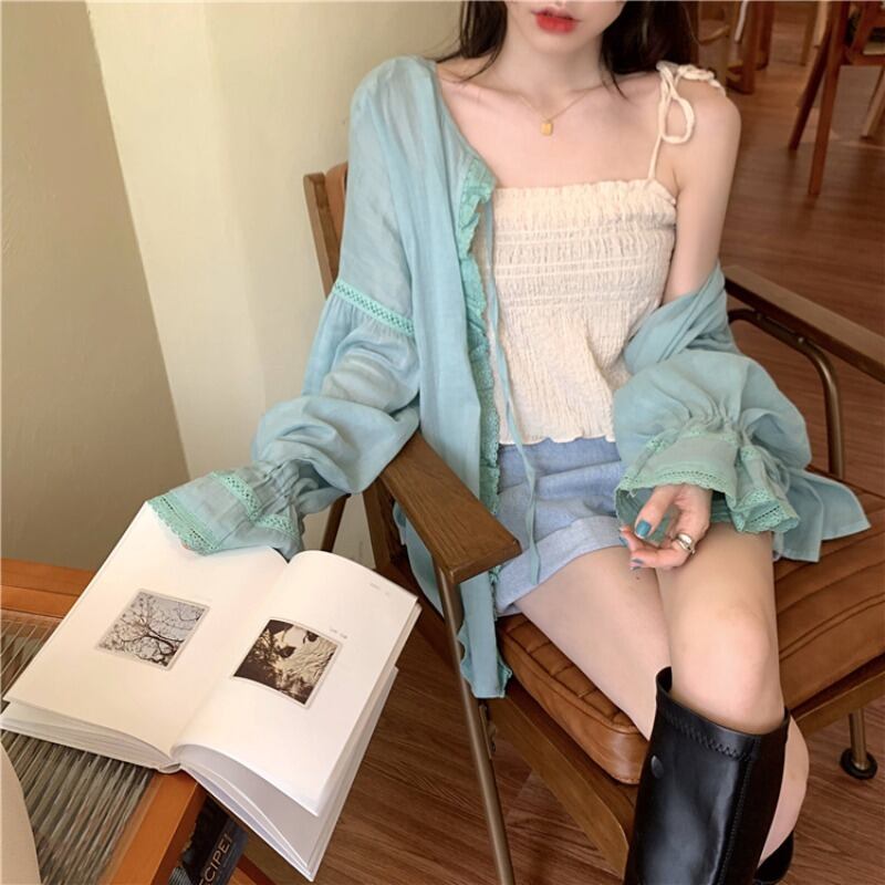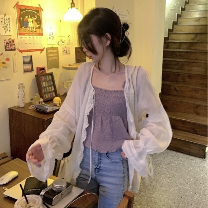 レースシャツ ホワイトジャケット サマールーズトップス ロング 夏物 レースアップ ブラックストロベリース28366551365